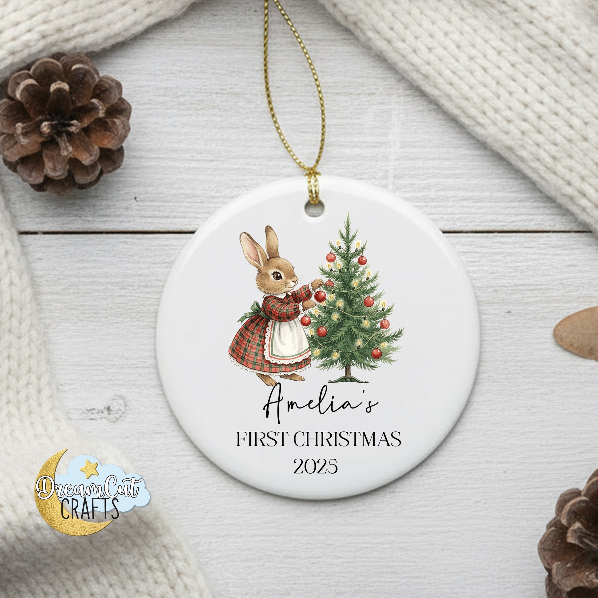 Christmas Bunny First Christmas Ornament – Personalized Ceramic Baby’s First Christmas Decoration