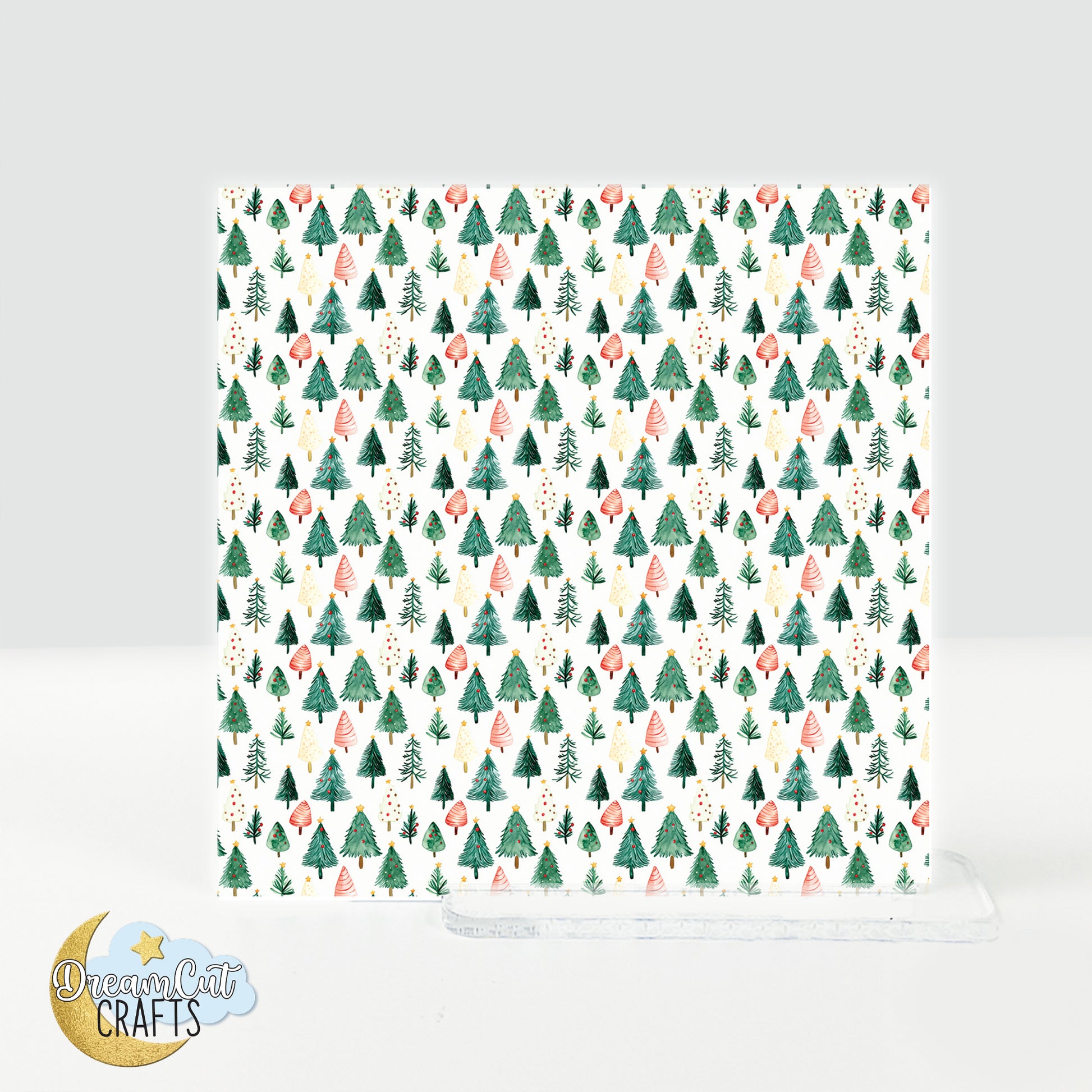 Bring a cozy woodland touch to your holiday projects with this Watercolor Forest Trees UV printed acrylic sheet, designed for makers who love nature-inspired Christmas patterns. The design features a seamless forest of watercolor-style green trees with soft festive accents, creating a warm and charming background for all kinds of creative work.
